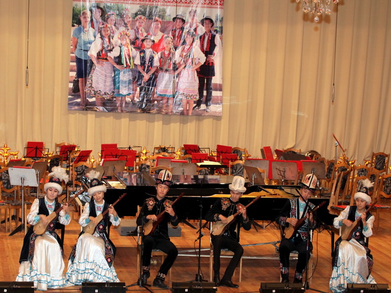 Музыкальную программу праздничного мероприятия открыли лауреаты Международного музыкального конкурса ARS POLONIA - ансамбль комузистов «Aкак», музыканты которого виртуозно исполнили произведение Ниязалы Борошева «Кара Озгой».